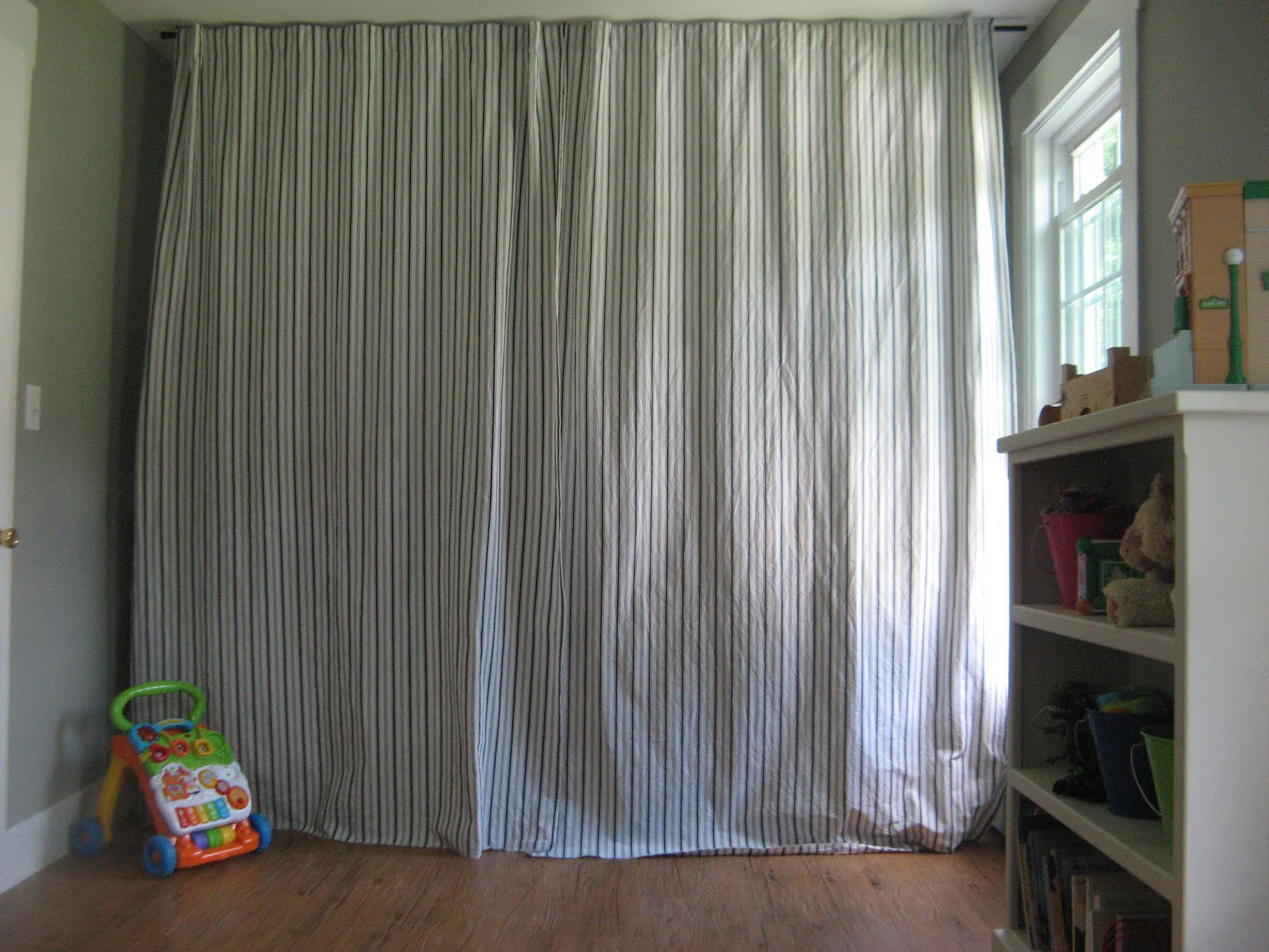 Once the hooks were securely in place I hung my curtain rod with curtains in place. I was pretty happy with the outcome, and more importantly not having to see the washer & dryer anymore. Take a look :