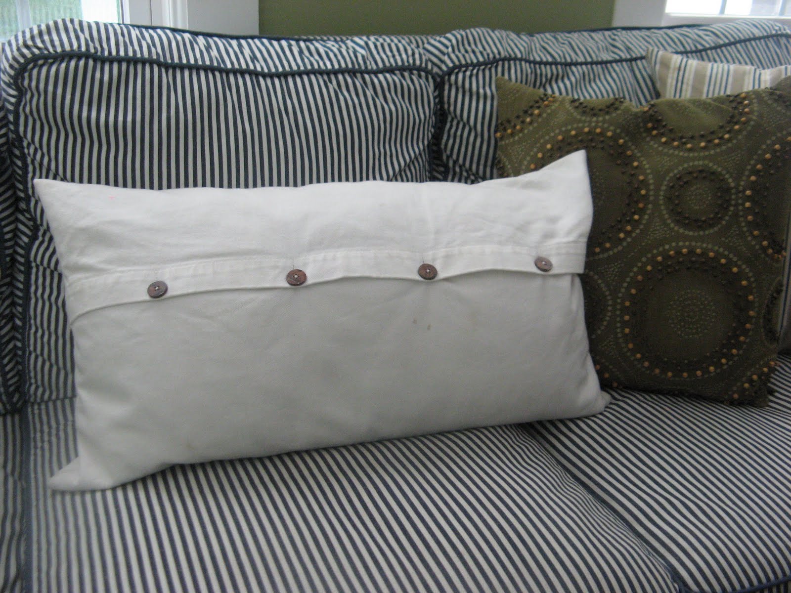 Third : The old switcher-roo. For a fresh/new look I decided to swap out the buttons on a throw pillow I already had in our living room. I purchased the pillow from Ikea, you can find it here, so all I had to do was purchase the buttons. I headed down to JoAnn Fabrics to browse some button beauty. I picked out some brown shell type looking ones, and headed home to DIY. I popped off the existing buttons, and sewed on my new purty ones in less than a half hour. Check it out :