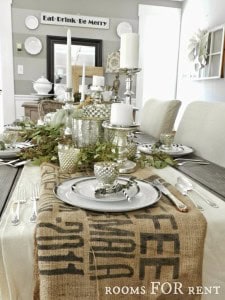 You are here: Home / Mercury Glass Thanksgiving Tablescape {Grand Finale} / burlap-2Brunner-2Bmercury-2Bglass