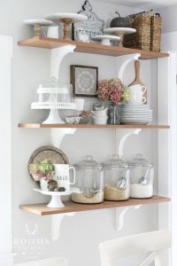 You are here: Home / Fall Vignettes / kitchen shelves 2