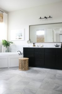 You are here: Home / Farmhouse Tour Friday {vol.8} / black and white bathroom