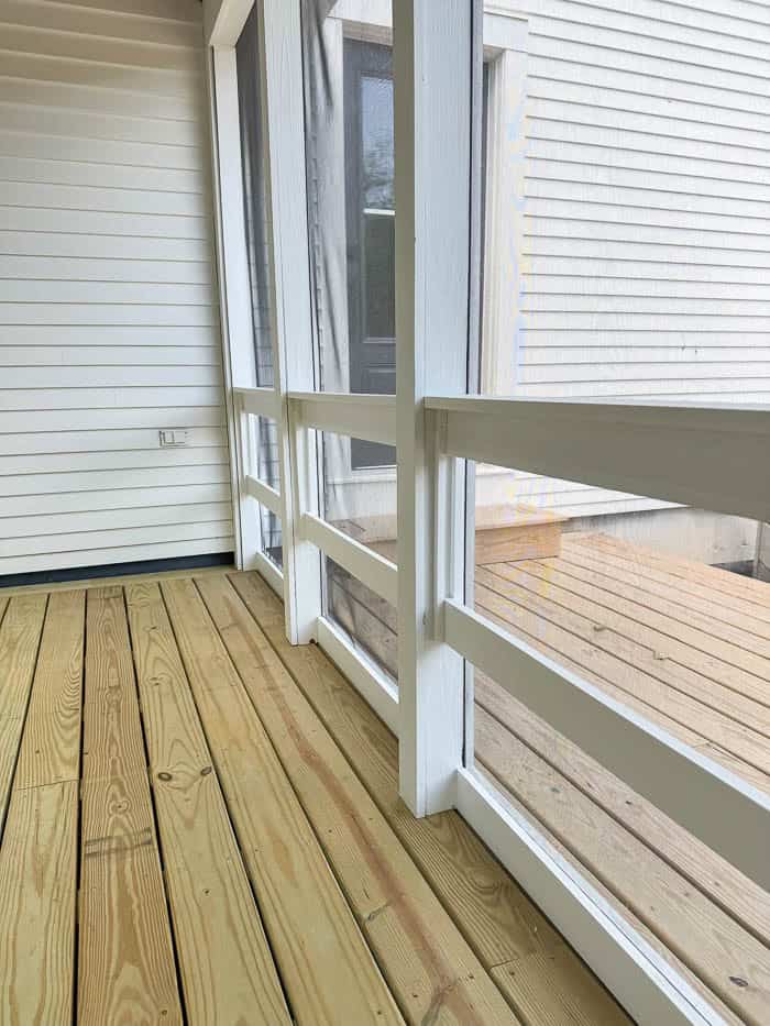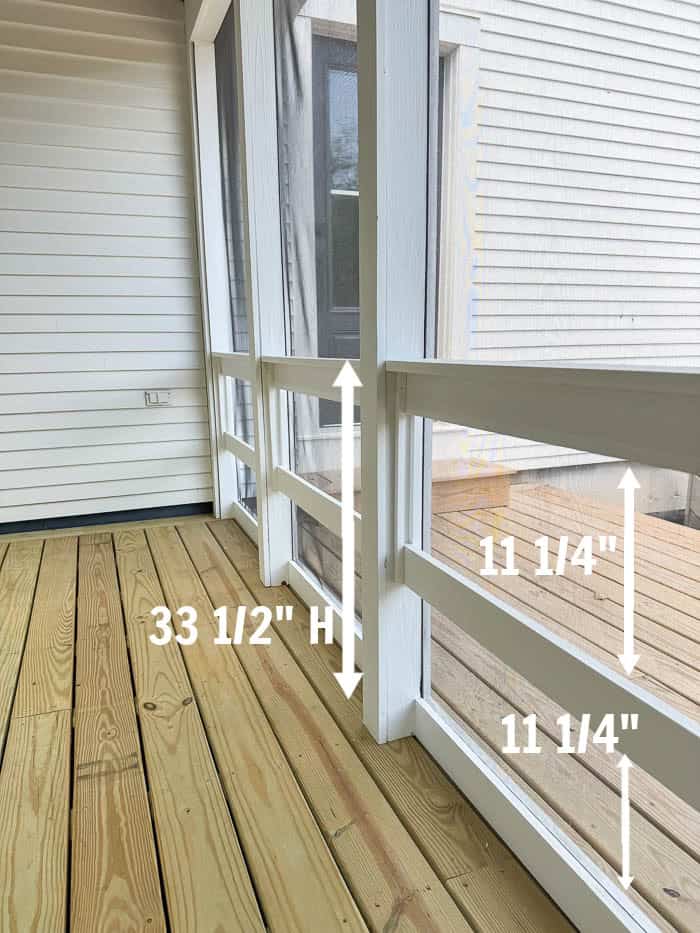 Last year, we began giving our back deck a makeover. I shared the Design Plans with you HERE, and Part 1 of the Renovation process HERE. At the end of Part 1, I shared how we would be installing new screens this coming spring, and I’m so excited to tell you that our porch is done! Before I share the full reveal, I wanted to show you the progress of installing the new screens and the details on how we built our new porch railings. I contemplated many different styles for our porch railings, and I am so pleased with how they turned out.