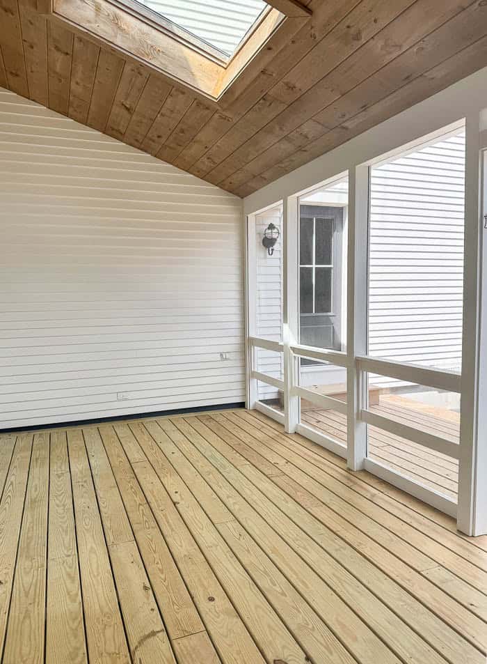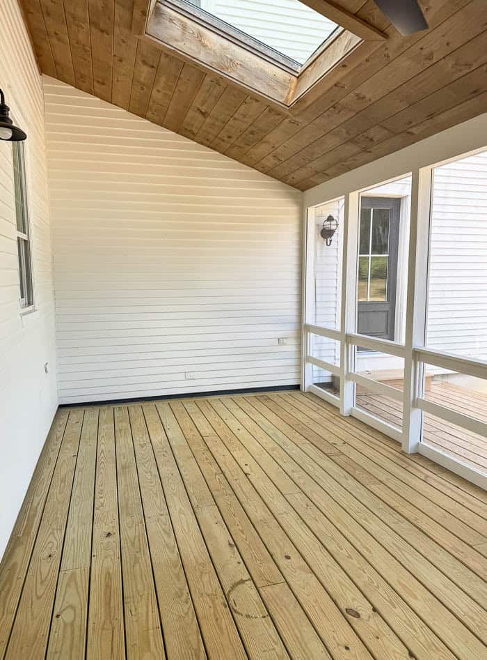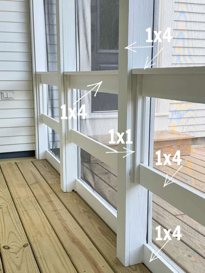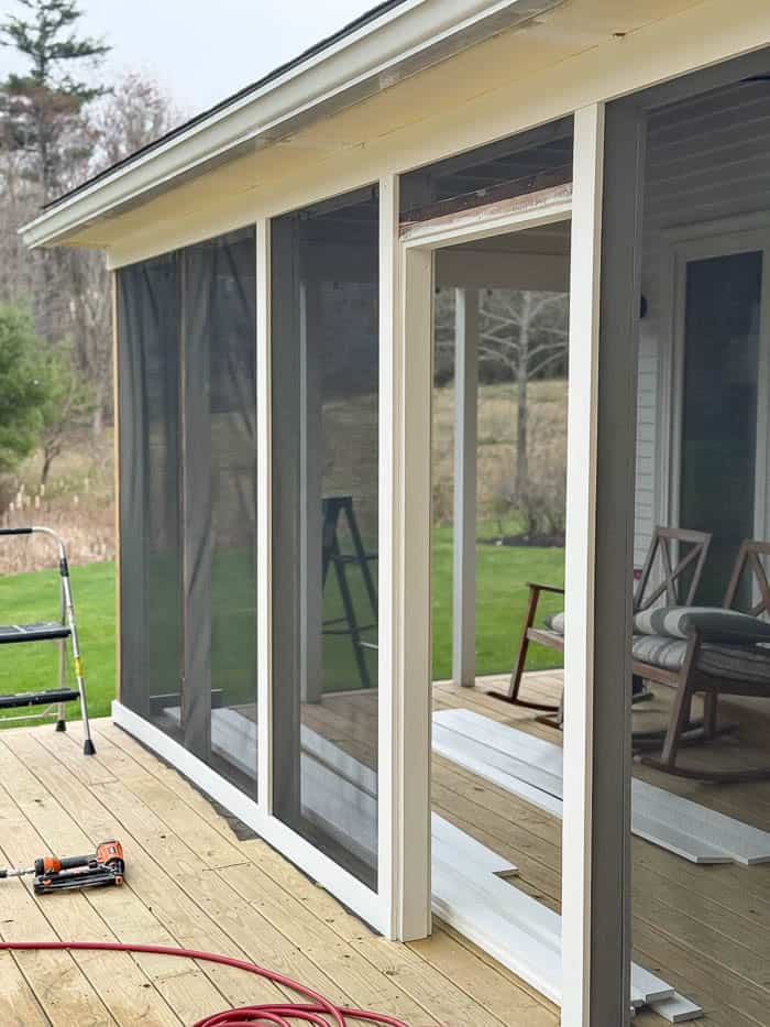 We chose to use PVC trim for this portion of our remodel because the idea of having to repaint all the trim boards around the screens after showing wear and tear from the elements was not an added task I wanted to have to do for maintenance every couple of years, or as needed. We purchased all the trim from Home Depot, found HERE.