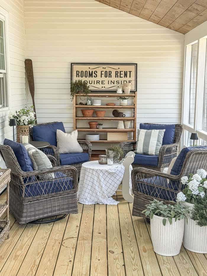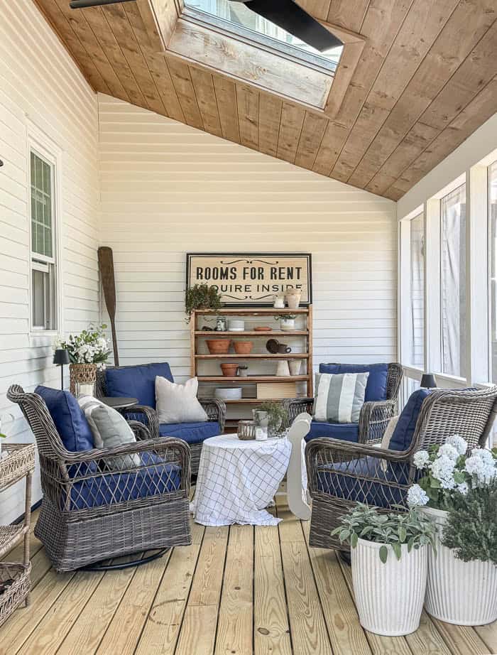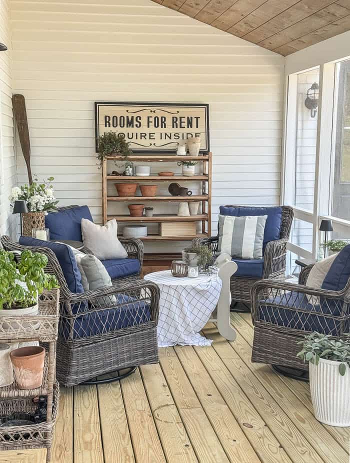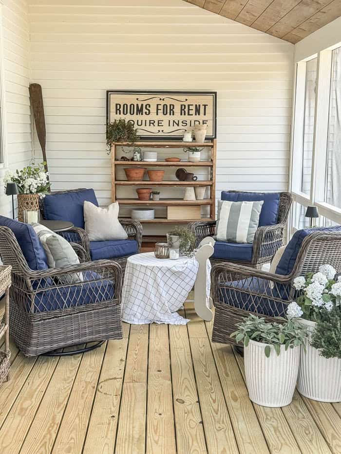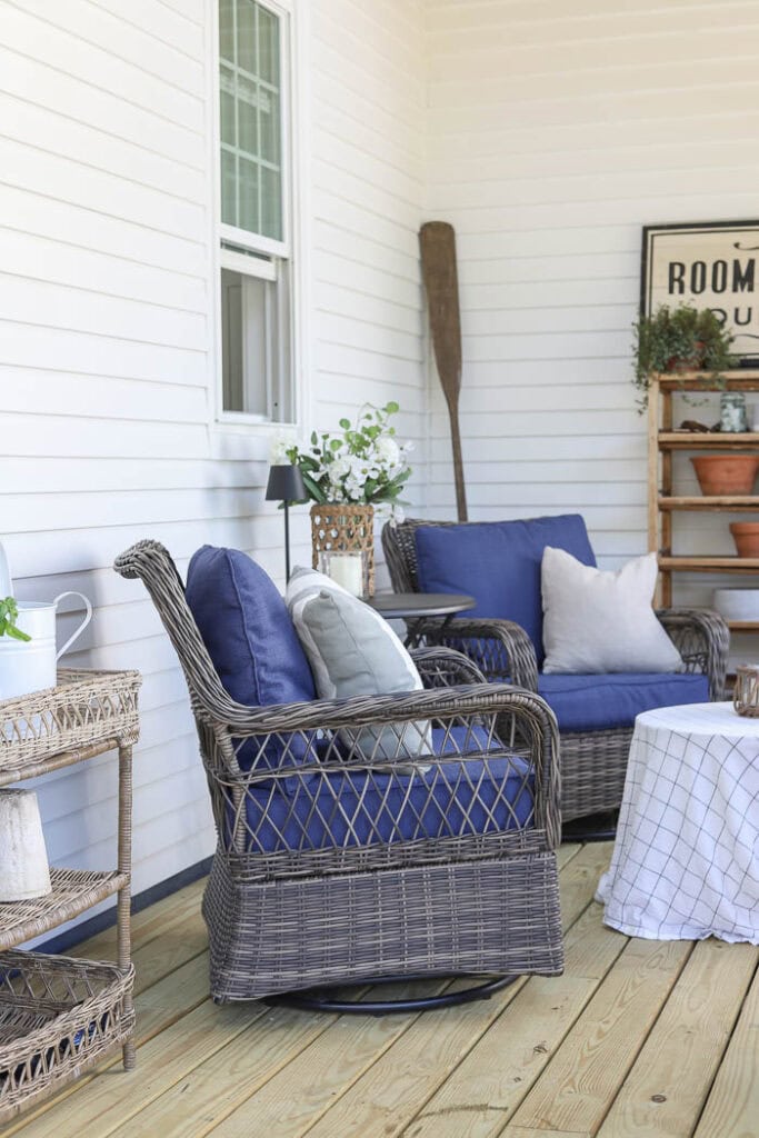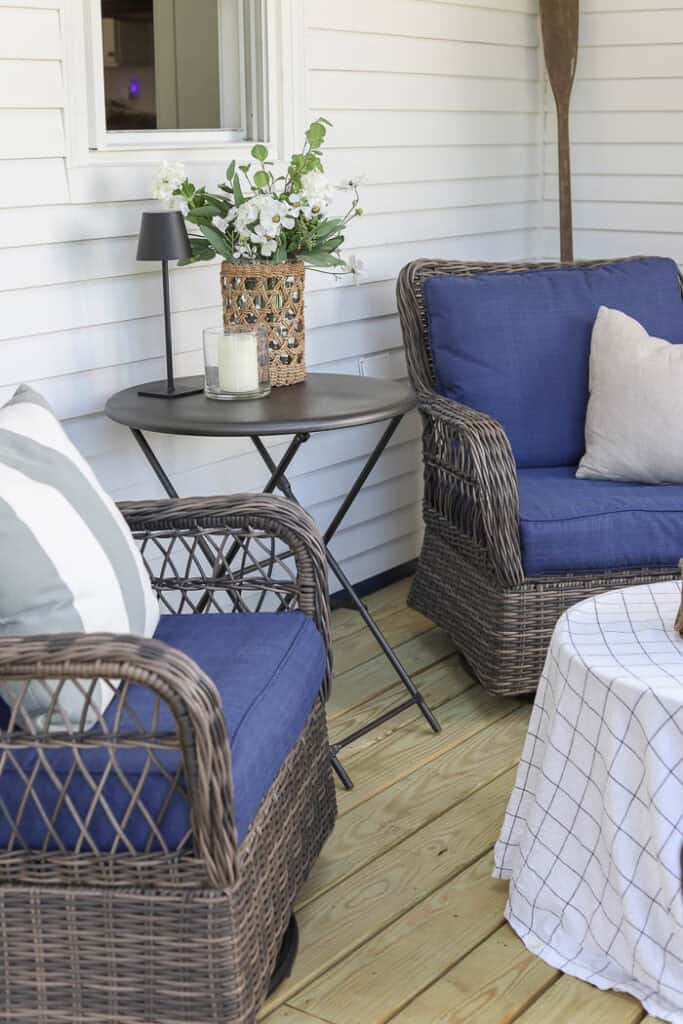 I always envisioned creating more of a conversation seating area on this side of our porch, so the hunt began for comfortable chairs that would create such an environment.