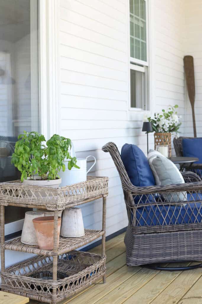 I also picked up this wicker table last summer with our back deck makeover in mind. The size was perfect, and the shelves gave me plenty of storage to keep some of my gardening tools close by.