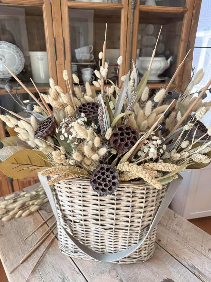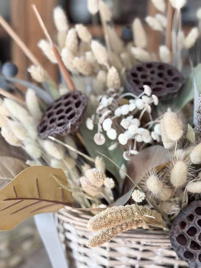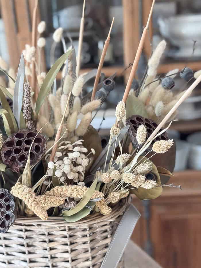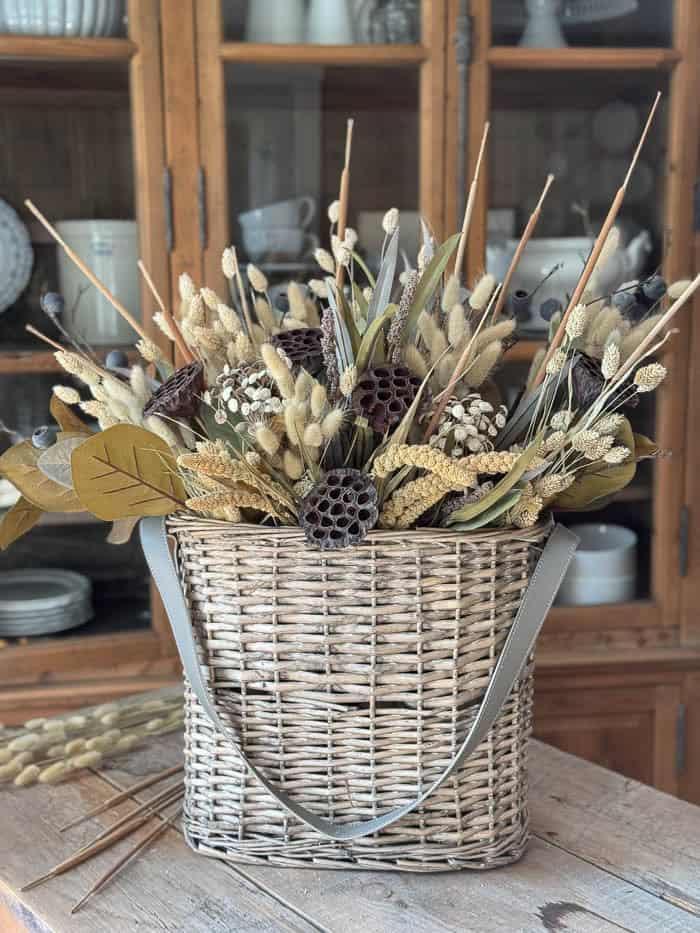 Creating a simple fall basket arrangement made with dried flowers and natural textures is one of the easiest ways to bring the beauty of the season indoors. The best part? It’s low-maintenance and lasts well beyond a fresh bouquet, making it a staple you can use year after year.