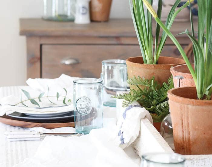 Hello Friends!! It’s Spring, it’s Spring!! Or so I’m telling myself that, because as I type this there it is snowing here in NH. Yes friends – SNOW, in April. Which for a New Englander is nothing new. Just as we are beginning to see buds on the trees and new life emerge from the ground, the threat of a spring snow is always a possibility. A common factor of spring in New England that I keep trying to teach my kids about. Thankfully it usually disappears as quickly as it shows up, but nonetheless just when you think winter is officially over, it comes back around for one more visit. So today, on this blustery Friday in New Hampshire, I’m sharing my favorite glimpses from Spring Tablescapes I’ve created for a little inspiration, and to help remind myself that Spring is officially here.