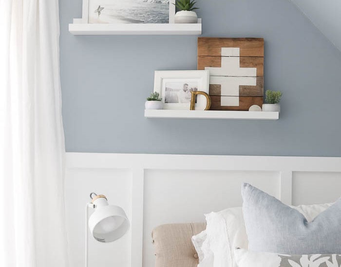 Hello Friends!! Today I am sharing our daughters most recent bedroom makeover. I honestly can’t even believe I’m using the word “tween” to describe her bedroom, because after all she is still my baby girl. And while she will always be my baby, my now 10 year old daughter had been longing for a room that felt more like her, and a little less pink. She had been asking for her room to be painted blue for over a year, but patiently waited while we finished up other projects around the house. The time finally came for us to tackle her room, and she was more than happy to help me with the painting!