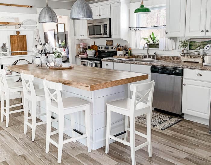 Hello Friends! Today I am sharing all things about our kitchen. I know I’ve shared posts about our kitchen in the past, but since the update of the new kitchen floor, and different posts about the open shelves in our kitchen, I thought it would be helpful to put all the info together in one post! So today we are diving into all the details about our kitchen sources.