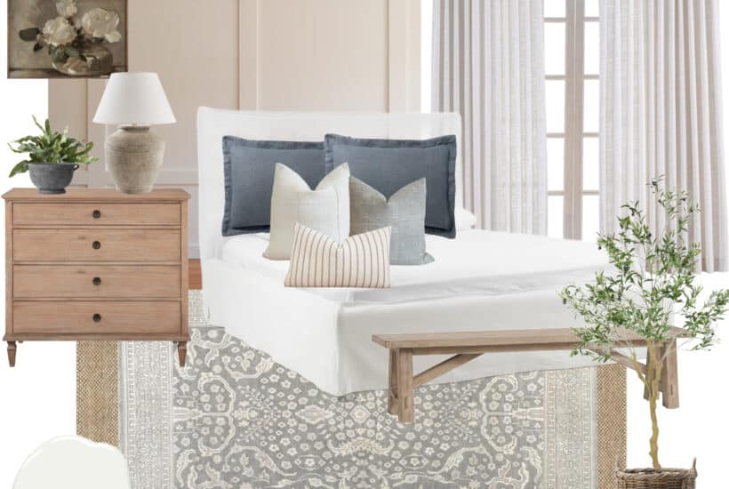 Today I am sharing the official “before” of our primary bedroom. Even though you have seen glimpse’s of our primary bedroom on the blog before, I’m designating an entire blog post to show you the before, and share a bit of the design plan that I have for this space. I’ve been slowly working in our primary bedroom over this past year (eh’em I said sloooooowly right), as it was one of that spaces I wanted to tackle when I shared my Goals post back in the beginning of the year. It’s so exciting to see some progress, which also means we are finally getting some curtains hung! Can you believe it, after 2 1/2 years we are finally going to hang curtains in our bedroom!